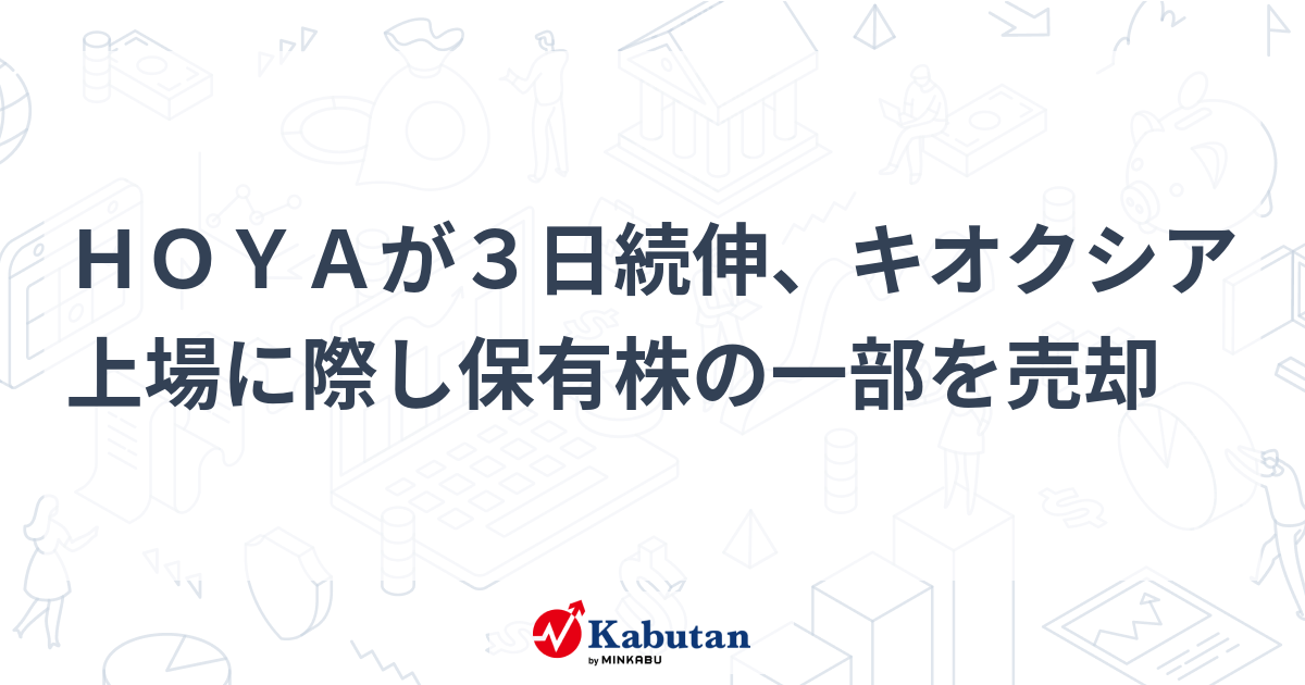 HOYAが3日続伸、キオクシア上場に際し保有株の一部を売却 | 個別株 - 株探ニュース