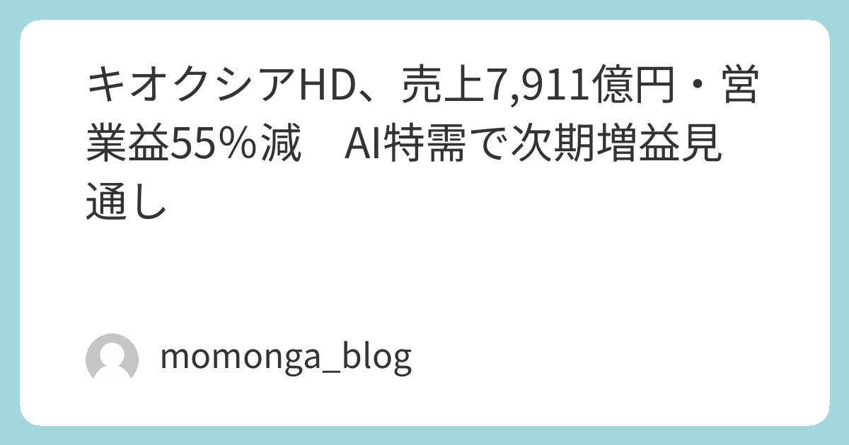 キオクシアHD、売上7,911億円・営業益55%減 AI特需で次期増益見通し | モモンガの日常