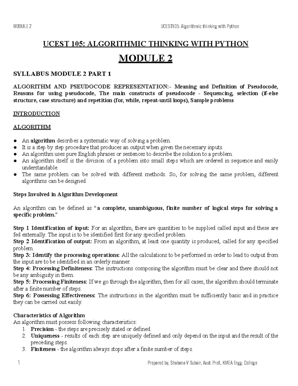 UCEST 105: Module 1 Complete Notes on Algorithmic Thinking in Python ...