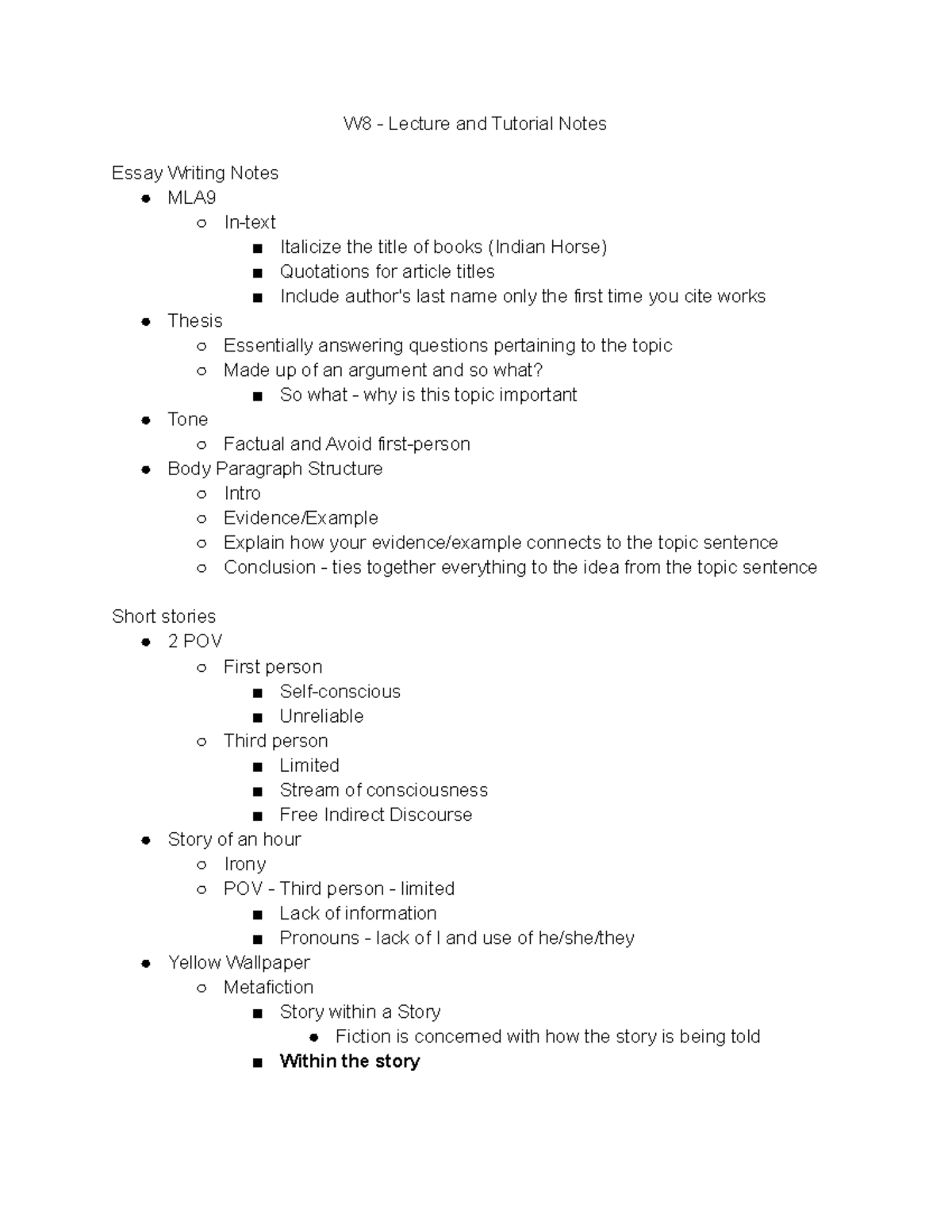 W8 - Lecture and Tutorial Notes - It often involves the narrator or ...