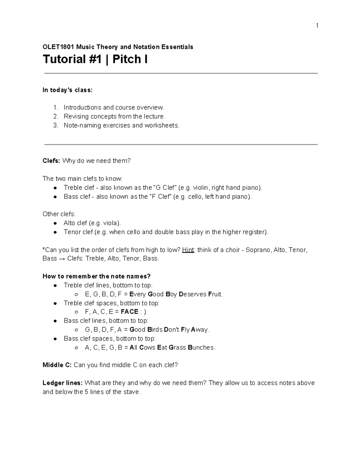 OLET1801 Tutorial Notes - OLET 1801 Music Theory and Notation ...