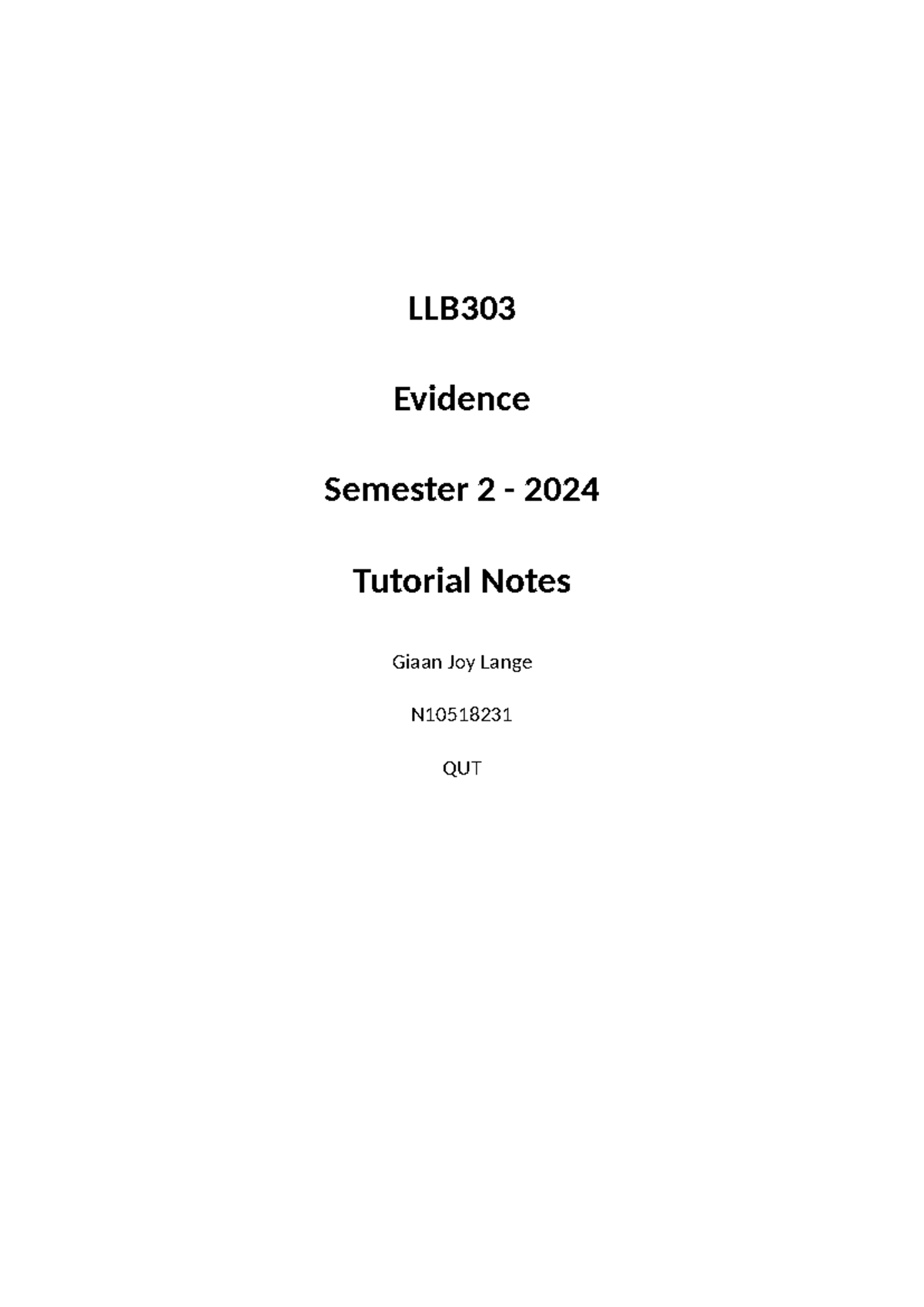 LLB303 Tutorial Notes - LLB Evidence Semester 2 - 2024 Tutorial Notes ...