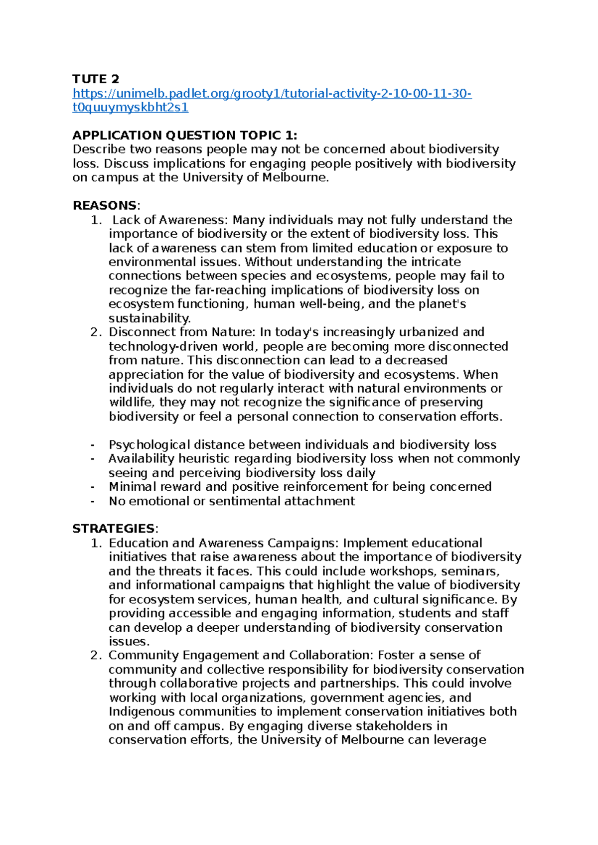ENST2000 1 tutorials - Tutorial notes weeks 1-5 - TUTE 2 - Studocu