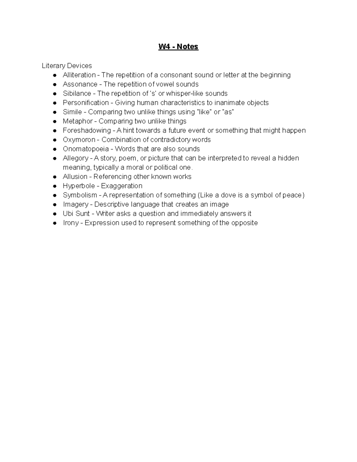 WEEK 4 - Lecture and Tutorial Notes - W4 - Notes Literary Devices ...