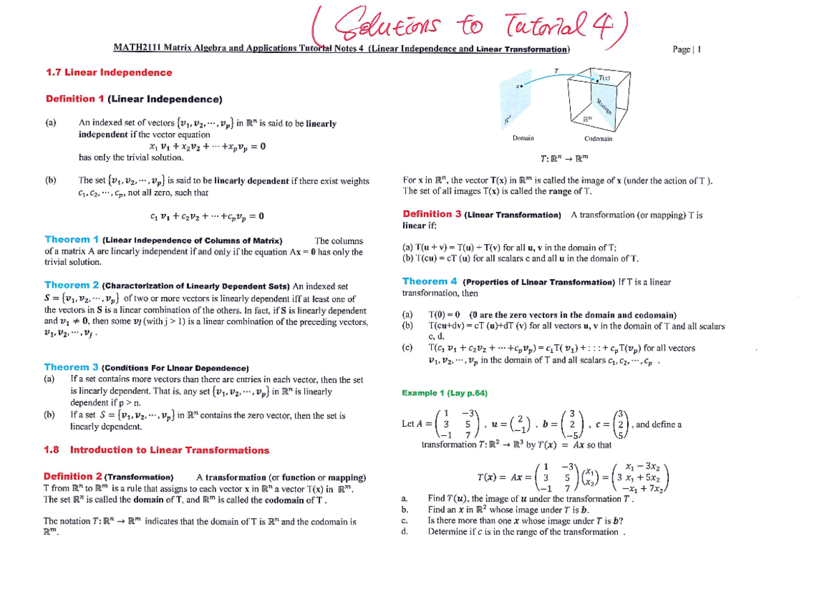 Solutions to MATH 2111 Tutorial Notes 4 (Linear Independence and Linear ...