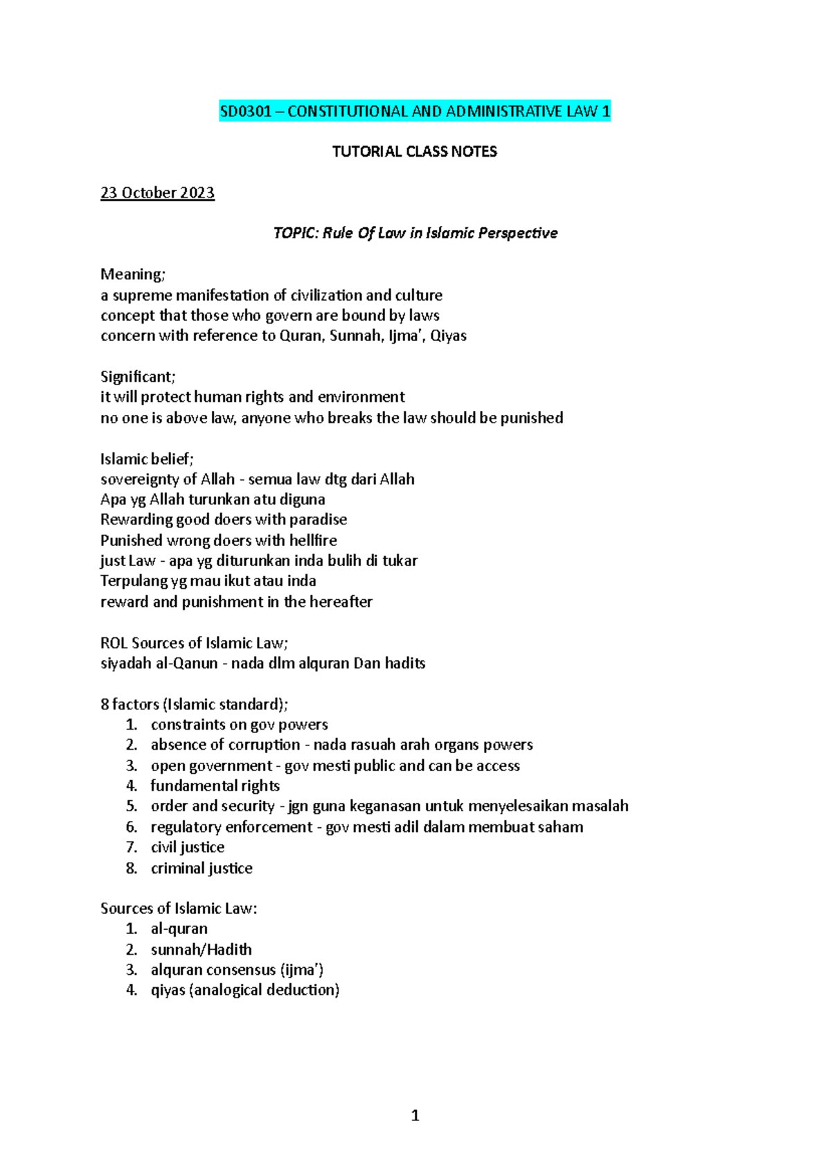 SD0301 - Tutorial Notes - 1 SD0301 – CONSTITUTIONAL AND ADMINISTRATIVE ...