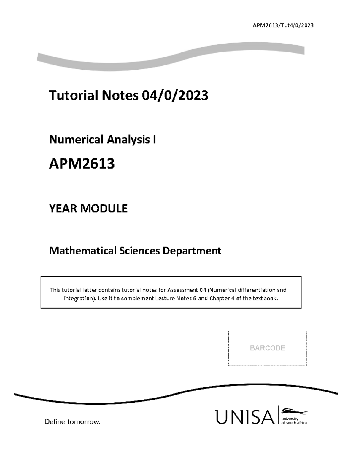 APM2613 Tutorial notes for Assessment 4 0 2023 - APM2613/Tut4/0 ...