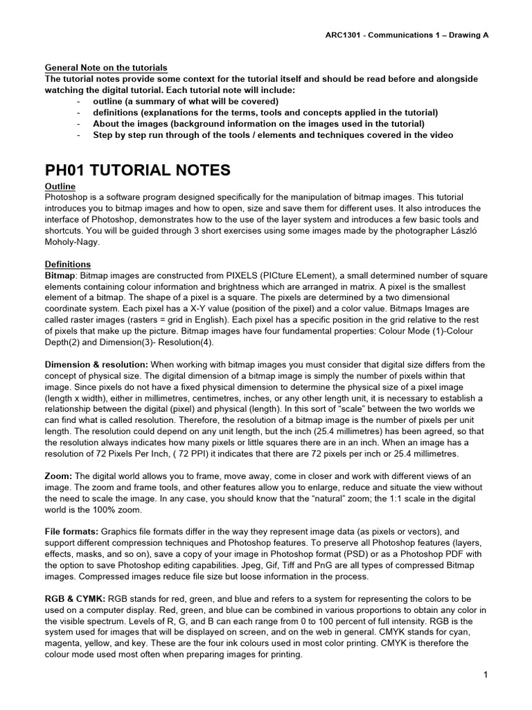 ARC1031-PH01 Tutorial Notes | PDF | Pixel | Adobe Photoshop