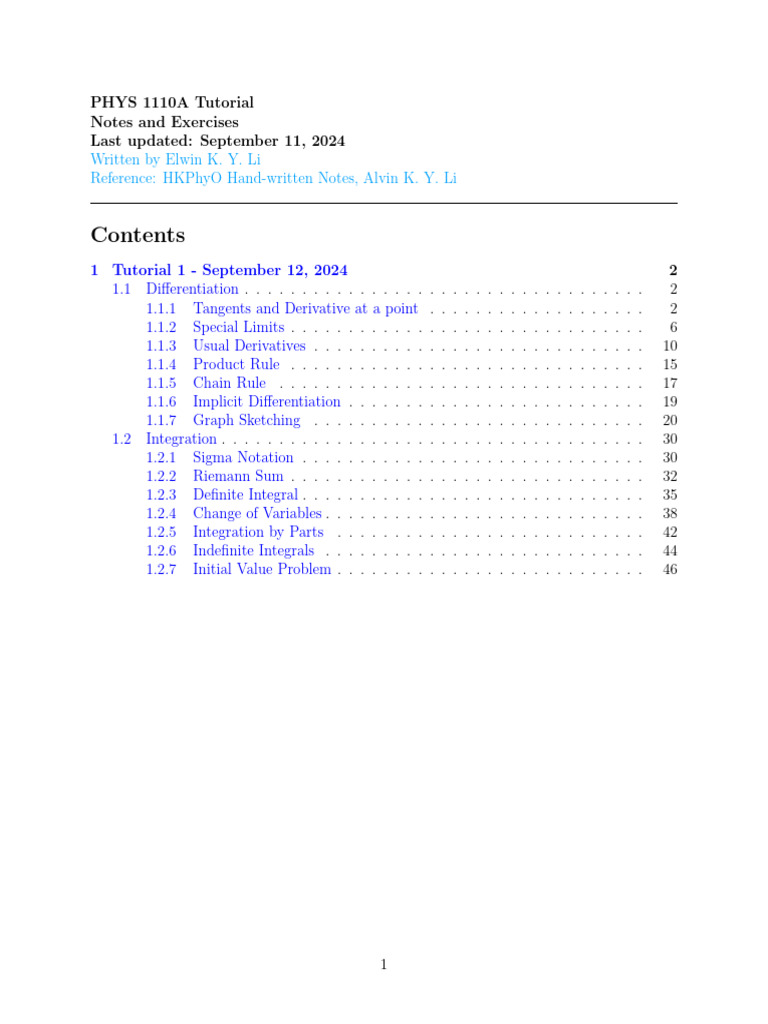 MATH1014 Tutorial Notes 08 | PDF | Integral | Mathematics