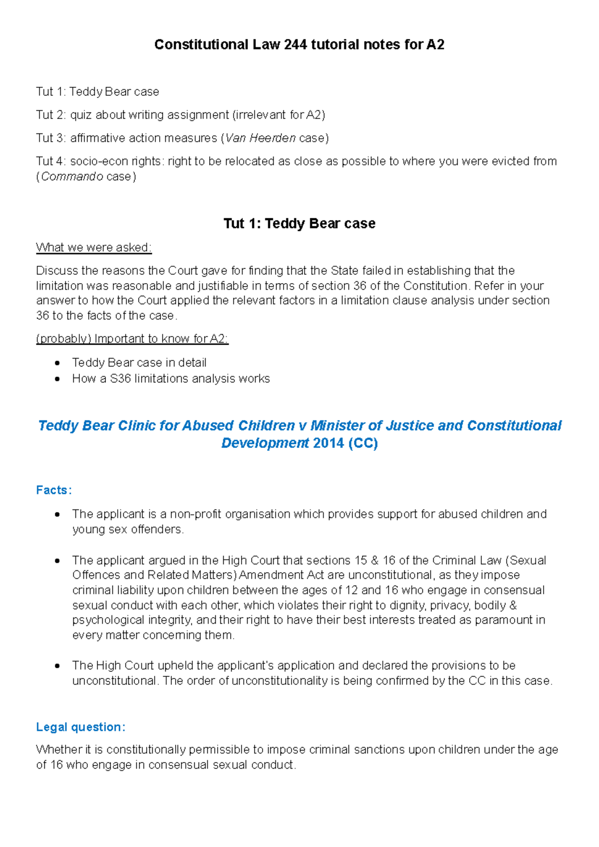 Constitutional Law 244 A2 Tutorial Notes: Teddy Bear & Related Cases ...