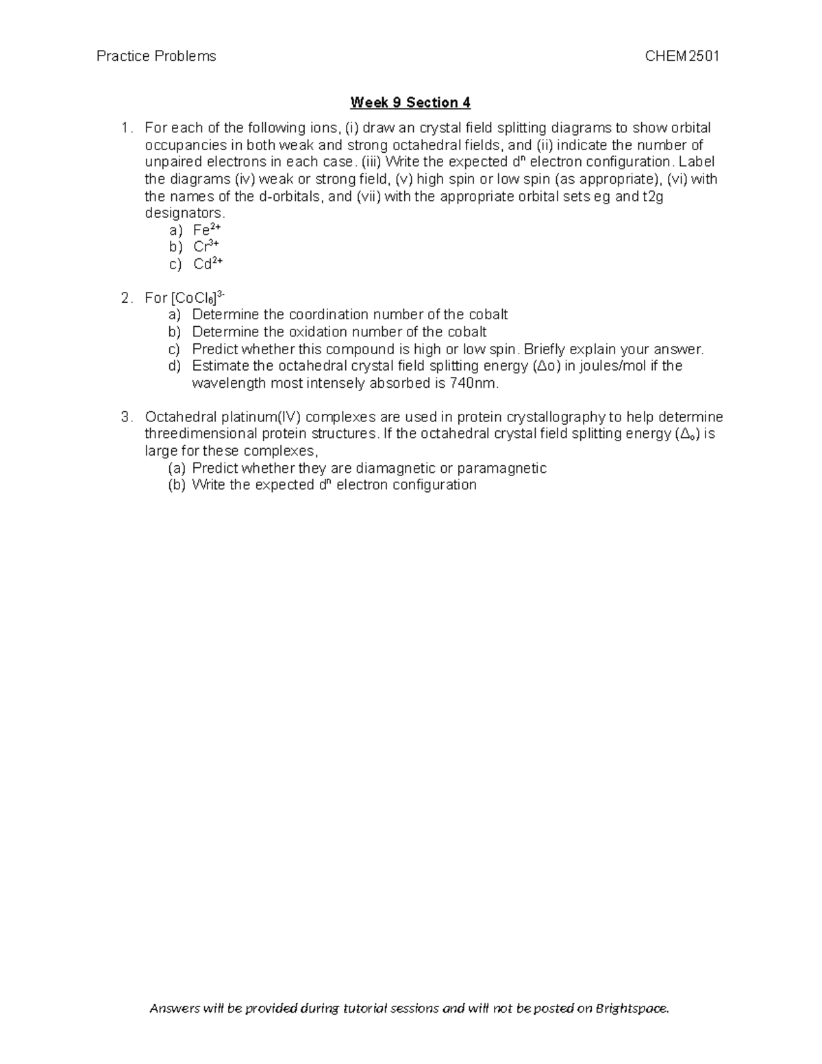 Practice Problems CHEM2501 Week 9 Section 4 Tutorial Notes - Studocu