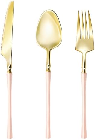 Amazon.com: 150 pcs Sturdy Rose Gold Silverware Set| Rose Gold Plastic ...