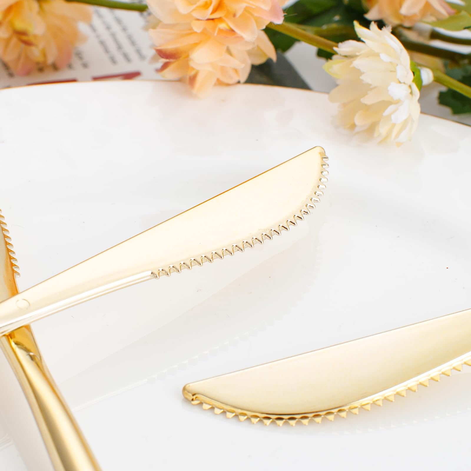 GJIE 150 Elegant Gold Plastic Cutlery Set - 50 Knives, 50 Forks, and 50 ...
