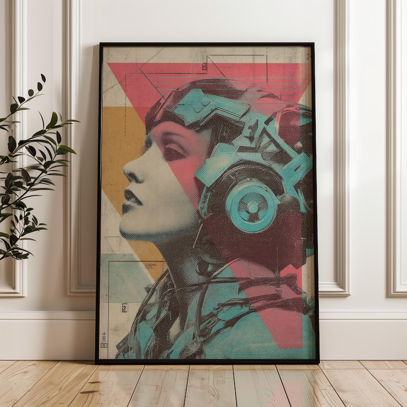 Retrato futurista de mulher, retrofuturismo japonês, pôster digital ...