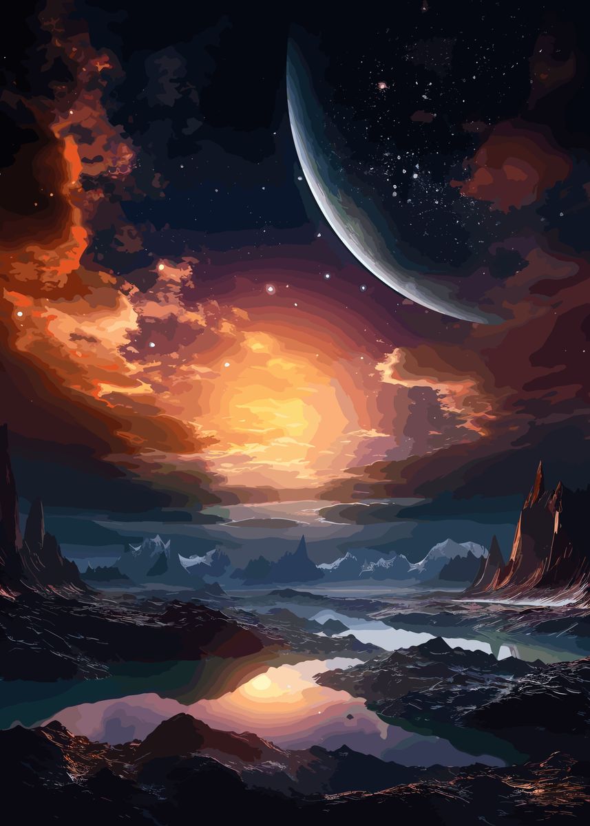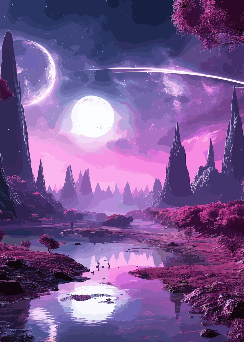 'Planet Paradise Landscape' Poster by Mai Mia | Displate