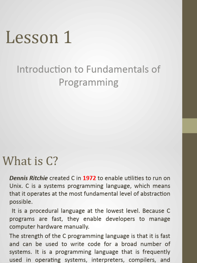 Lesson 1-Introduction to Fundamentals of Programming | PDF | C++ | C ...