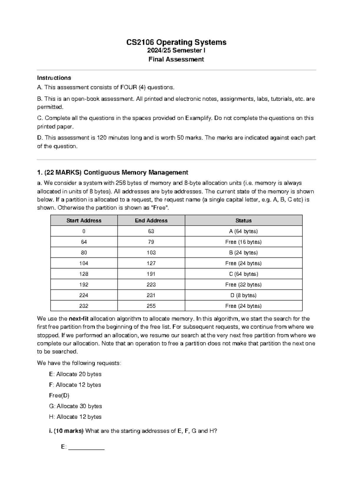 CS2106 Operating Systems Semester I Final Exam Questions - Studocu