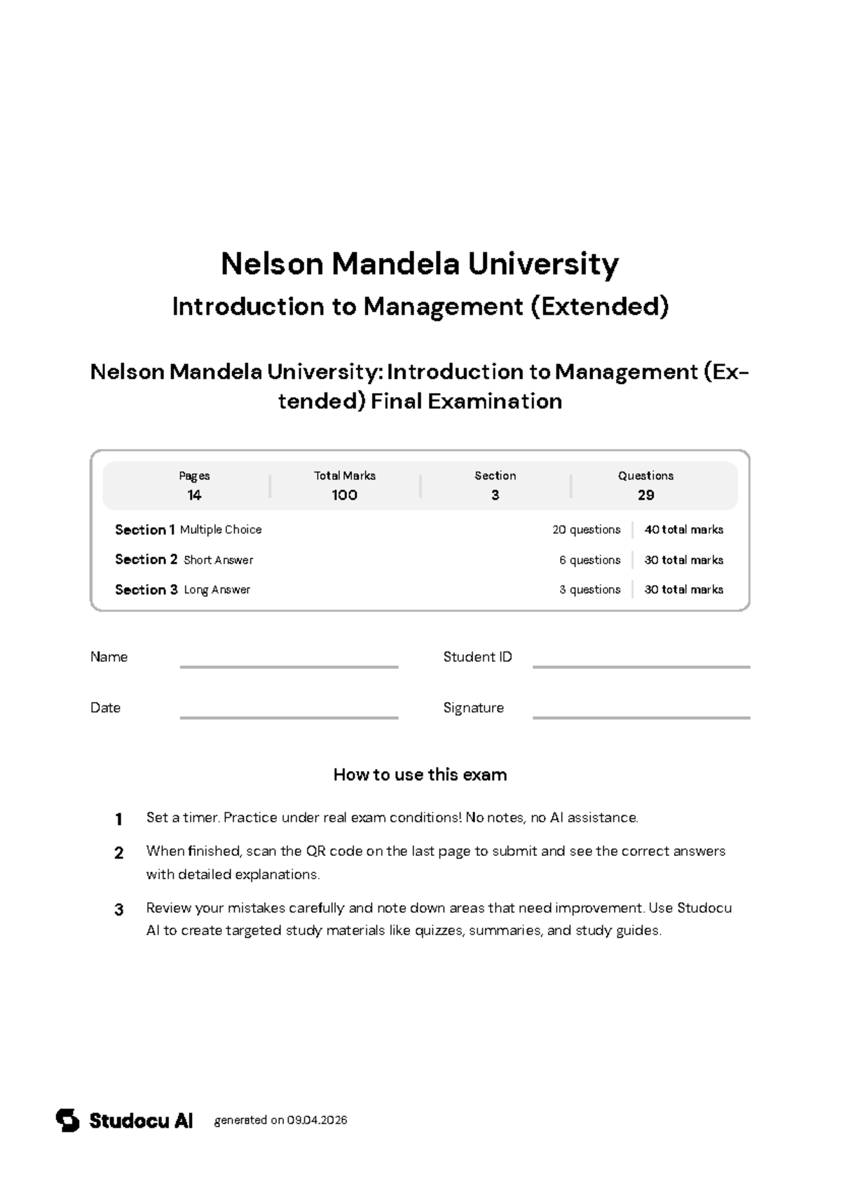 Introduction to Management (Extended) Final Exam - Studocu