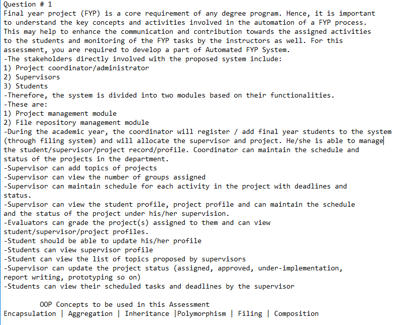 Question # 1 Final year project (FYP) is a core | Chegg.com