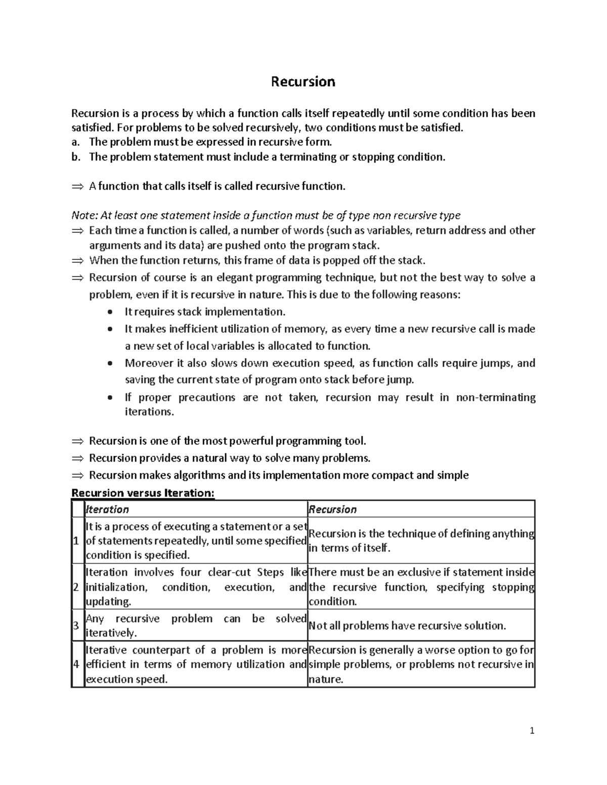 Recursion in Programming: Concepts, Types, and Examples (CS101) - Studocu