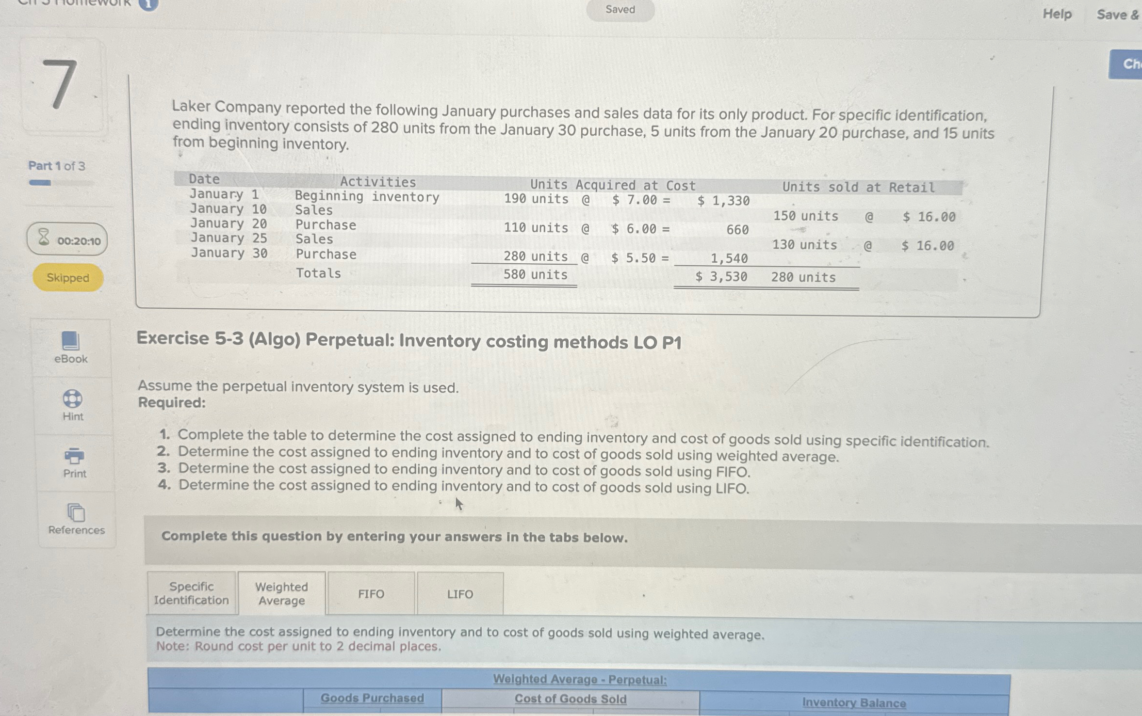 Solved SavedHelpSave &Laker Company reported the following | Chegg.com