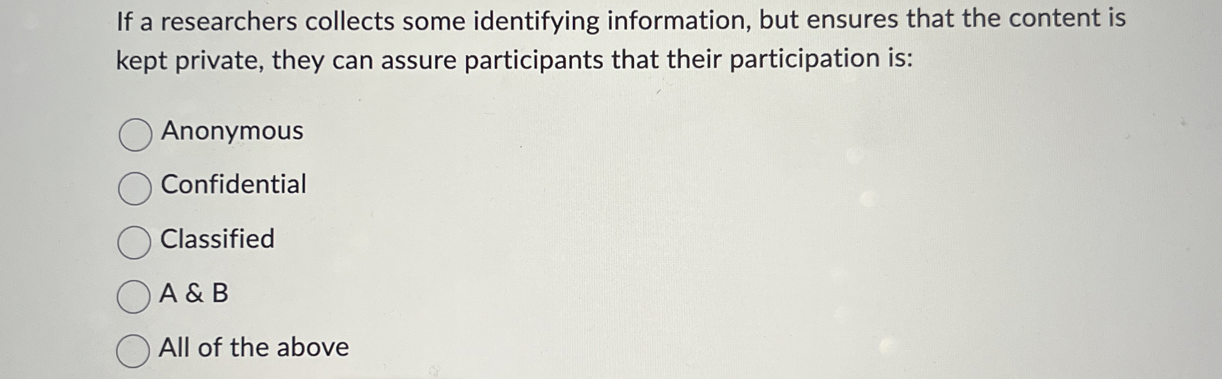 Solved If a researchers collects some identifying | Chegg.com