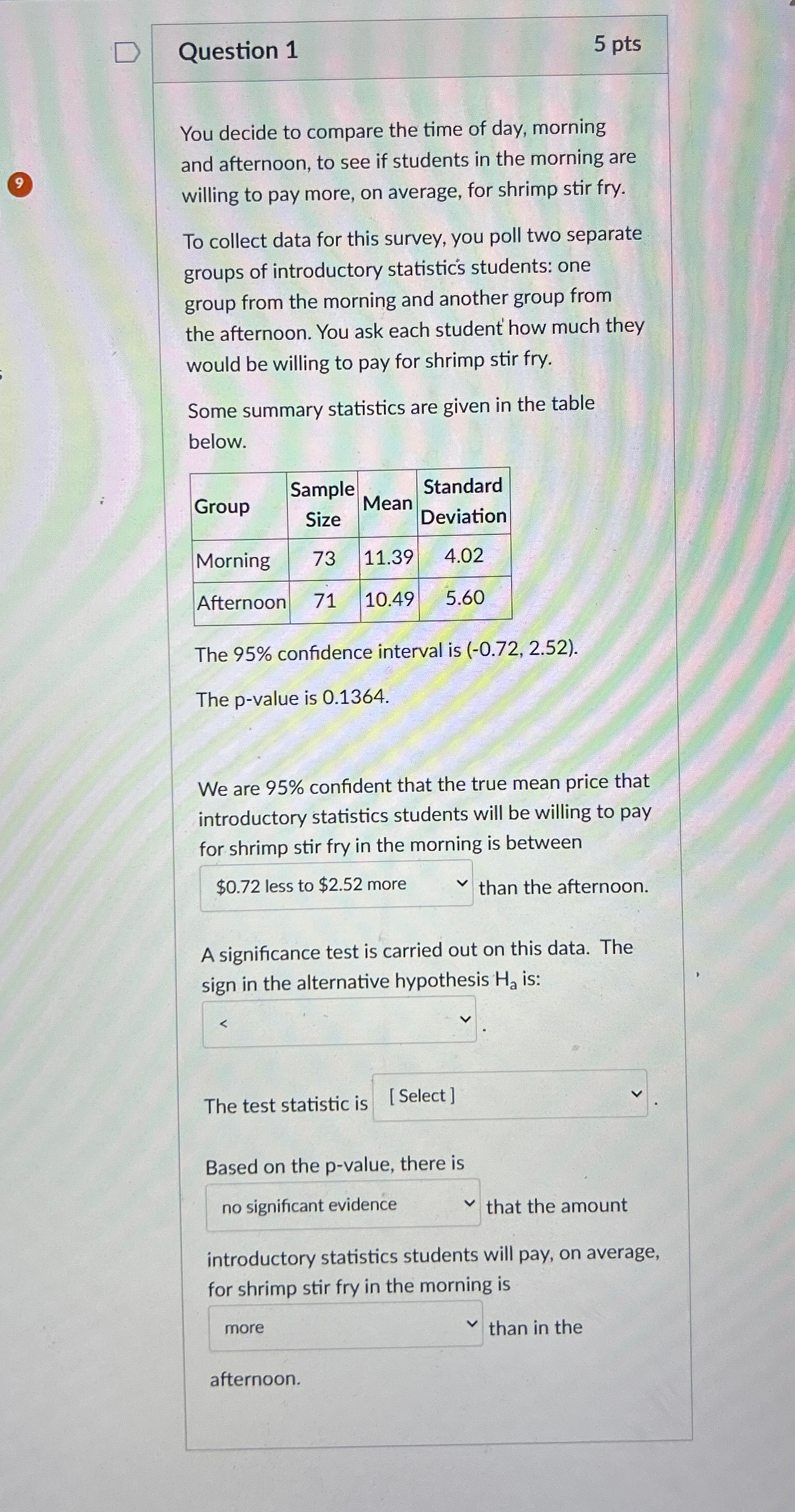 Solved Question 15 ptsYou decide to compare the time of | Chegg.com