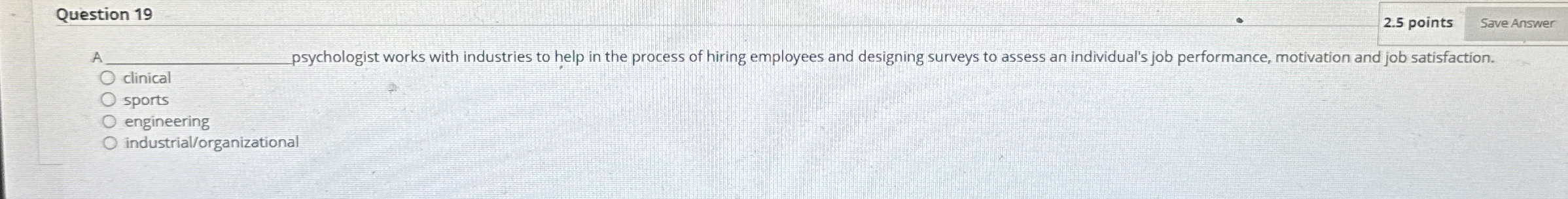 Solved Question 19Apsychologist works with industries to | Chegg.com