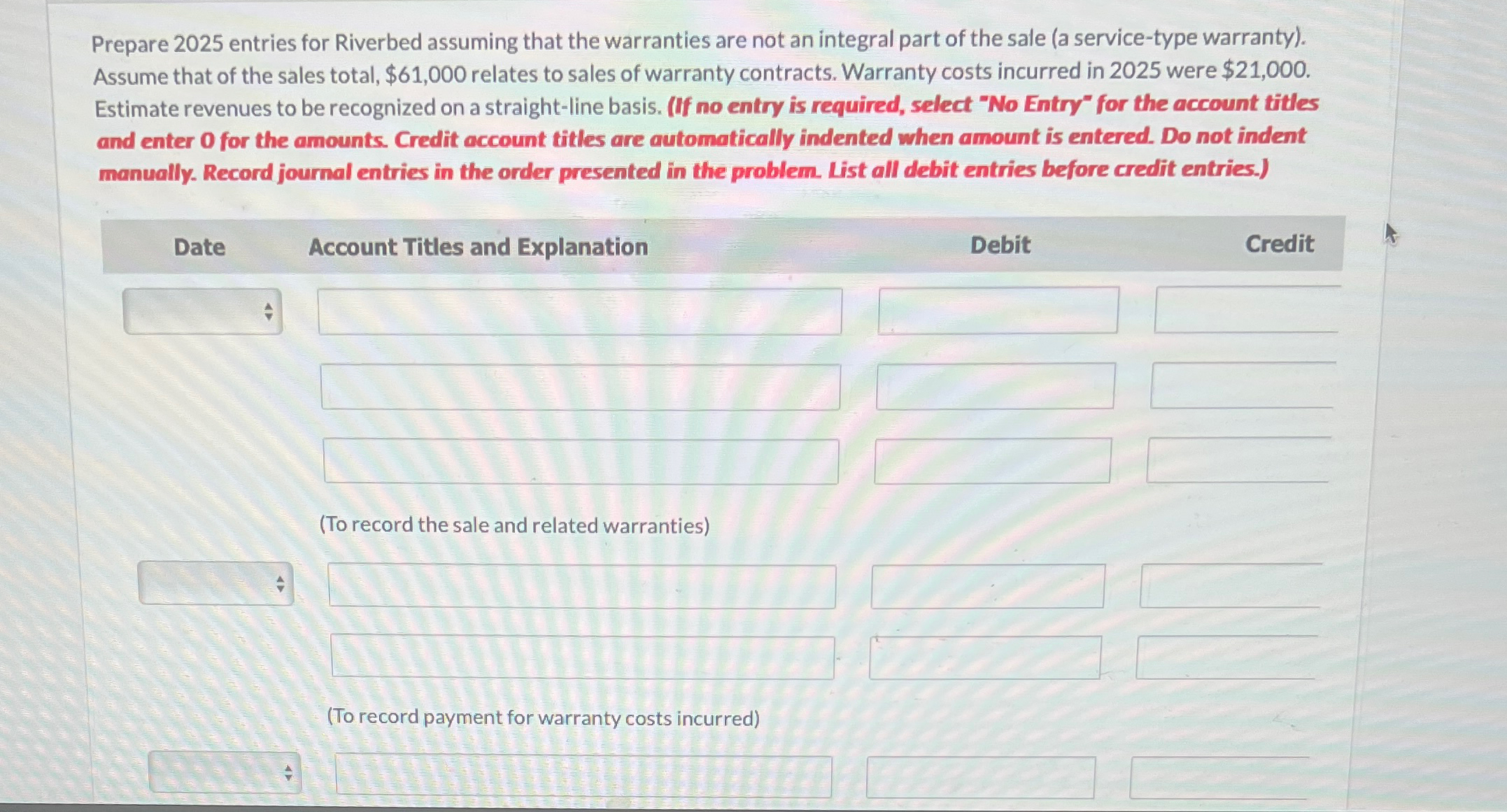 Prepare 2025 entries for Riverbed assuming that the | Chegg.com