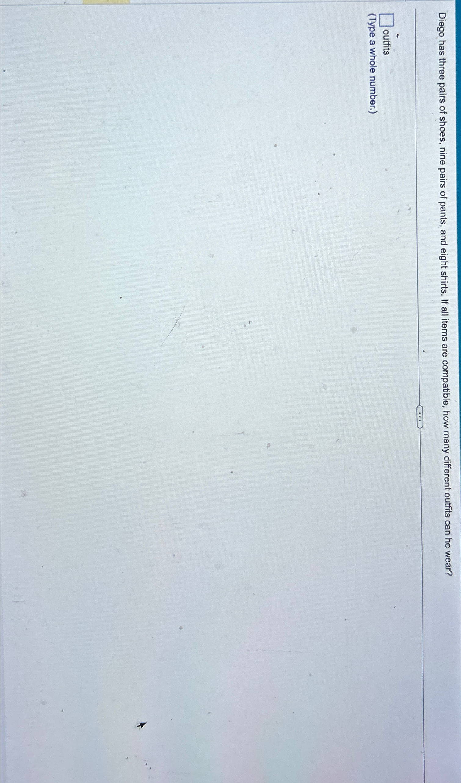 Solved Diego has three pairs of shoes, nine pairs of pants, | Chegg.com