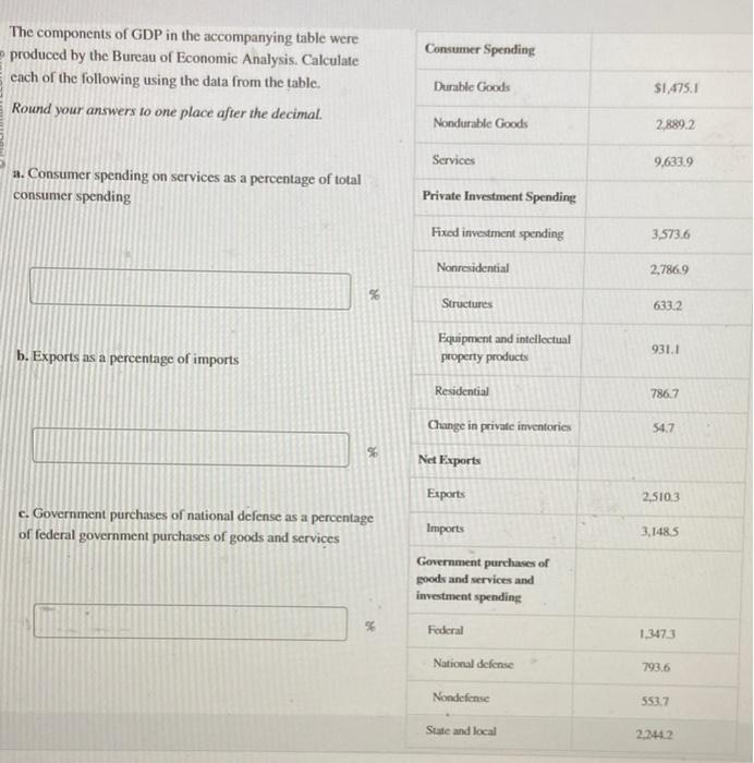 Solved The components of GDP in the accompanying table were | Chegg.com