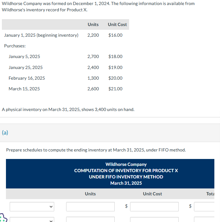 Solved Wildhorse Company was formed on December 1, 2024. | Chegg.com