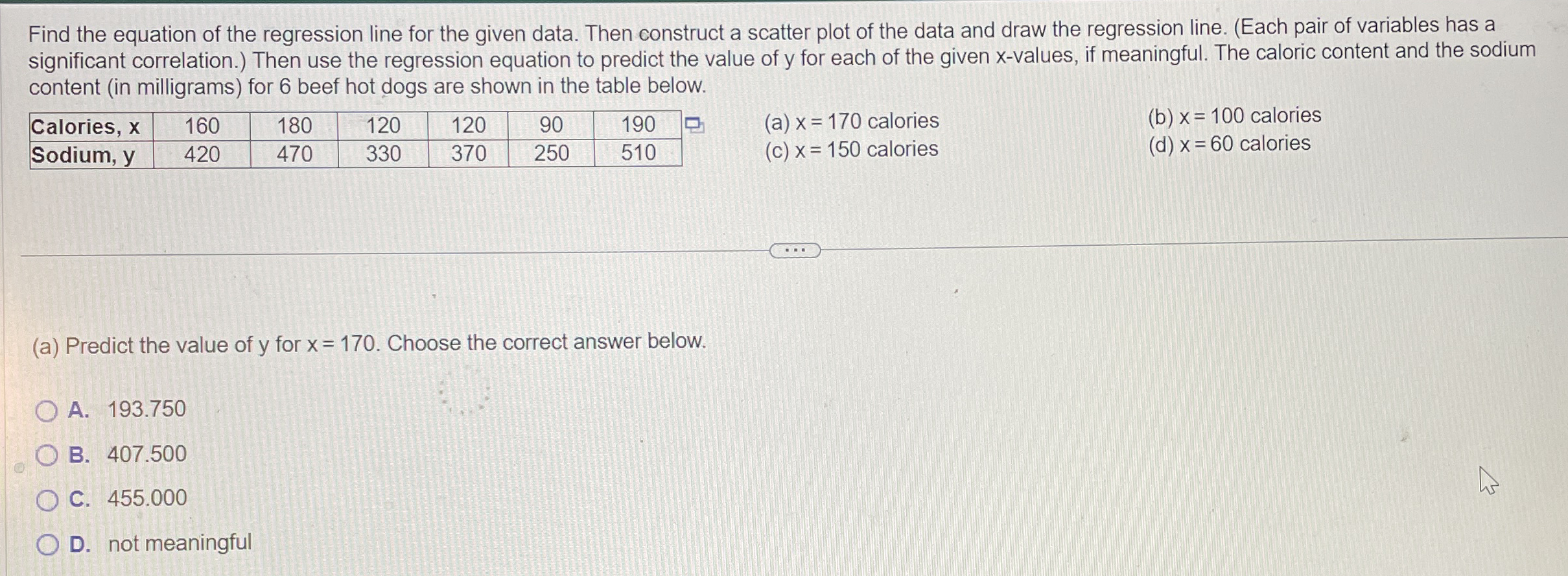 Solved Find the equation of the regression line for the | Chegg.com
