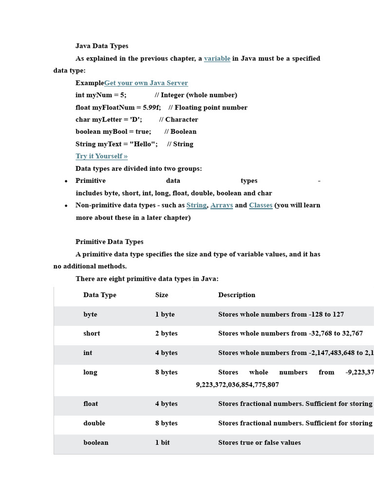 Data types in Java | PDF