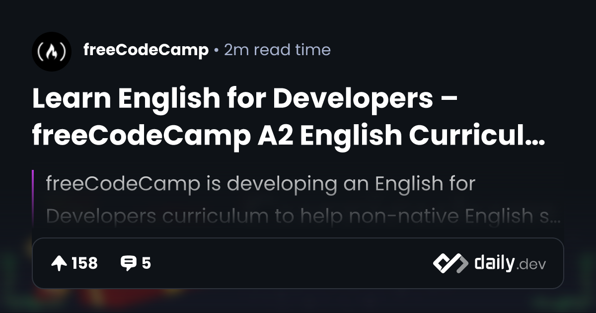 Learn English for Developers – freeCodeCamp A2 English Curriculum ...