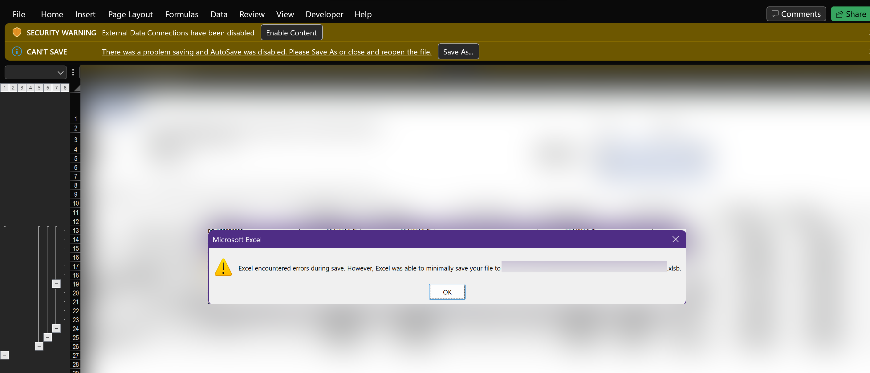 How to fix "There was a problem saving and AutoSave was disabled ...