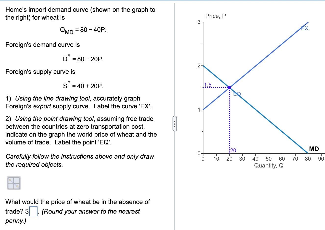 Solved Home's import demand curve (shown on the graph to the | Chegg.com