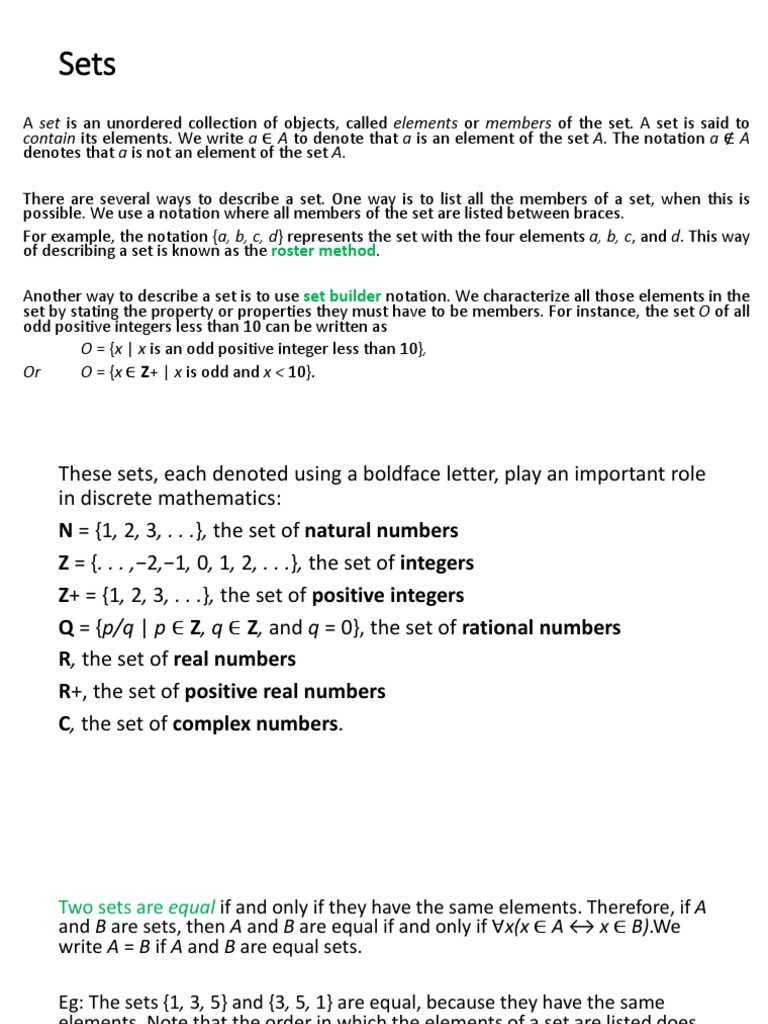 1 Introduction To Sets (Handout) | PDF | Set (Mathematics) | Numbers
