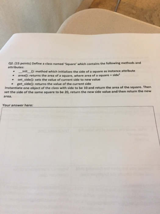 Solved 02. (15 points) Define a class named Square which | Chegg.com