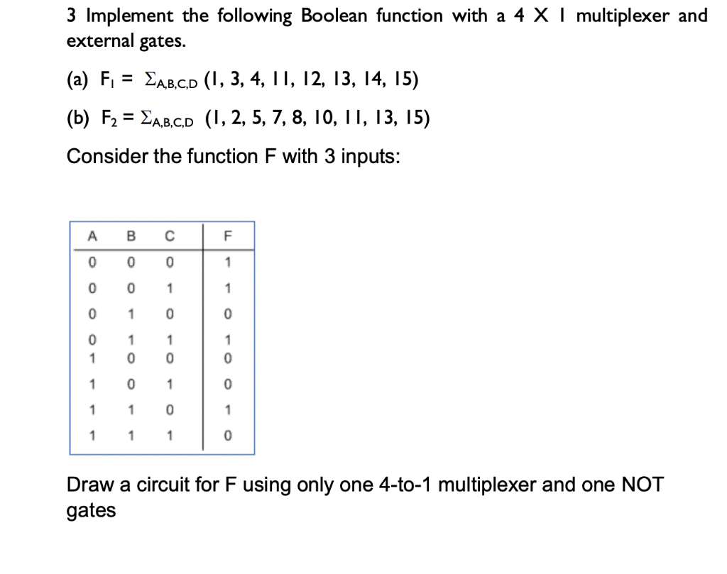 Solved = 3 Implement the following Boolean function with a 4 | Chegg.com