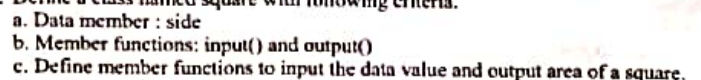 Based on this image's title: “Given the Boolean function F Define a class named square with following c..”