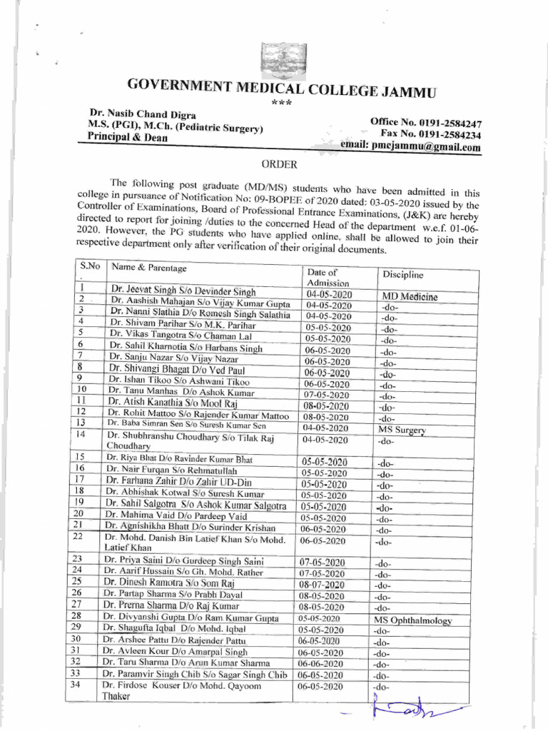 PG Joining List 2020 | PDF | Medicine