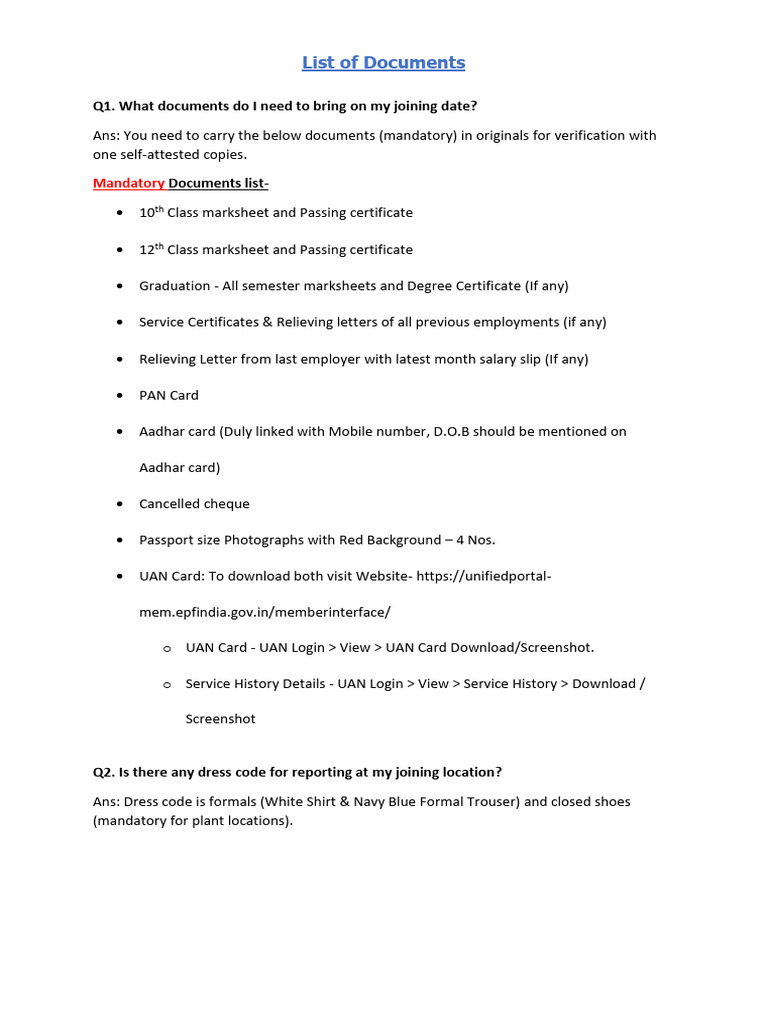 TPEM DAT Joining Doc List | PDF