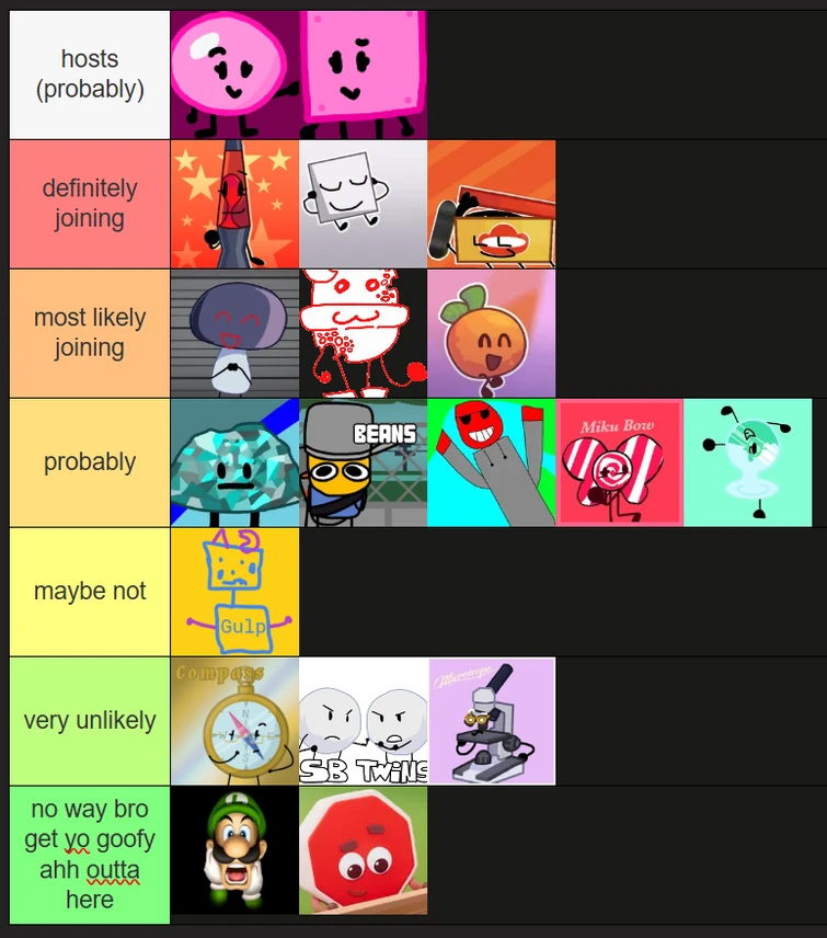 bftsc tier list but its the chance of them joining season 2 (no failed ...