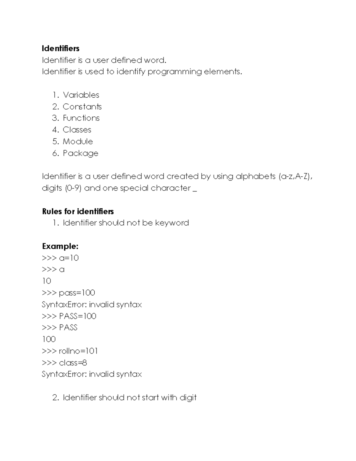 Python Introduction -5 - Identifiers Identifier is a user defined word ...