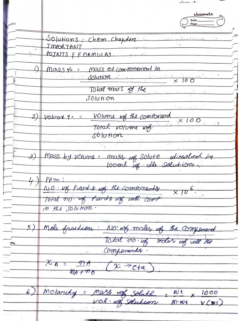Class 12 Chemistry Chapter 2 Solutions Notes (Handwritten Notes ...