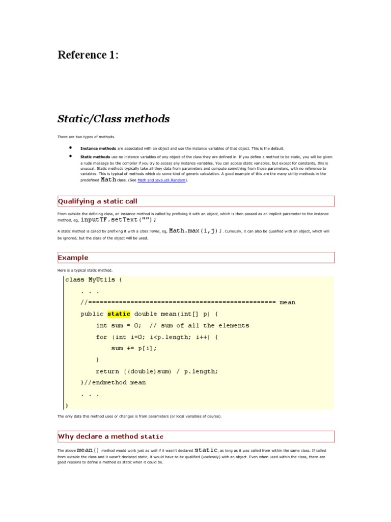 Static Methods | PDF | Method (Computer Programming) | Class (Computer ...