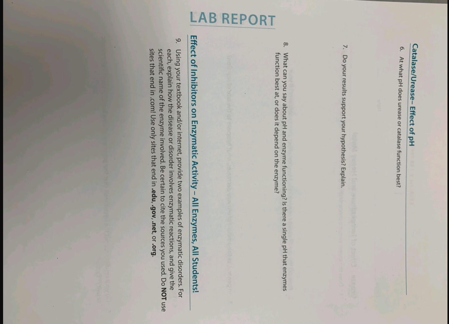 Solved Catalase/Urease-Effect of pH 6. At what pH does | Chegg.com