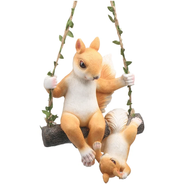 OUTDOOR FOR GARDEN Resin Pendant Squirrel on Swing for Patio Yard Decor ...