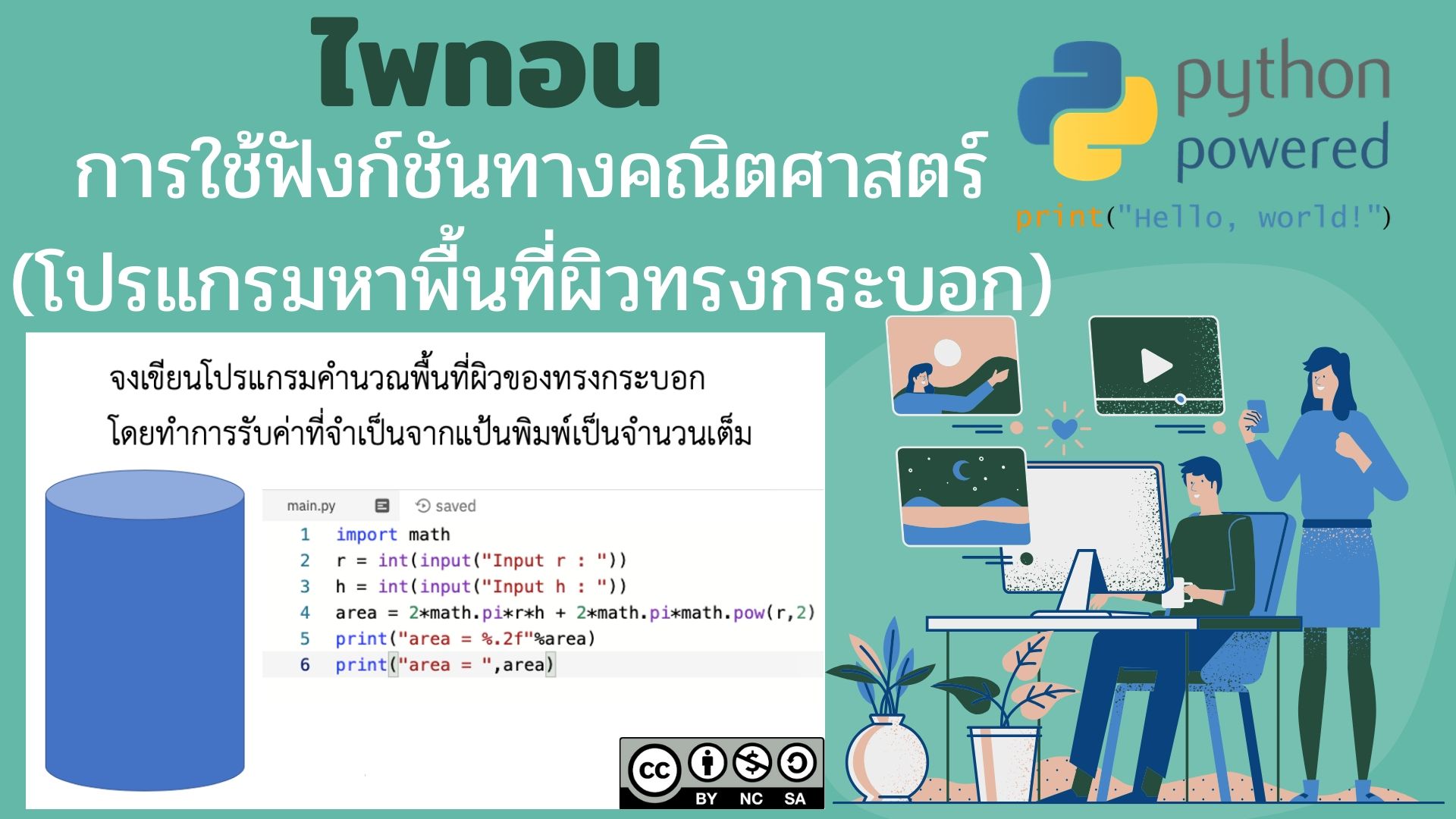 วิทยาการคำนวณ การเขียนโปรแกรมภาษาไพทอน ตอน โปรแกรมคำนวณพื้นที่ผิว ...